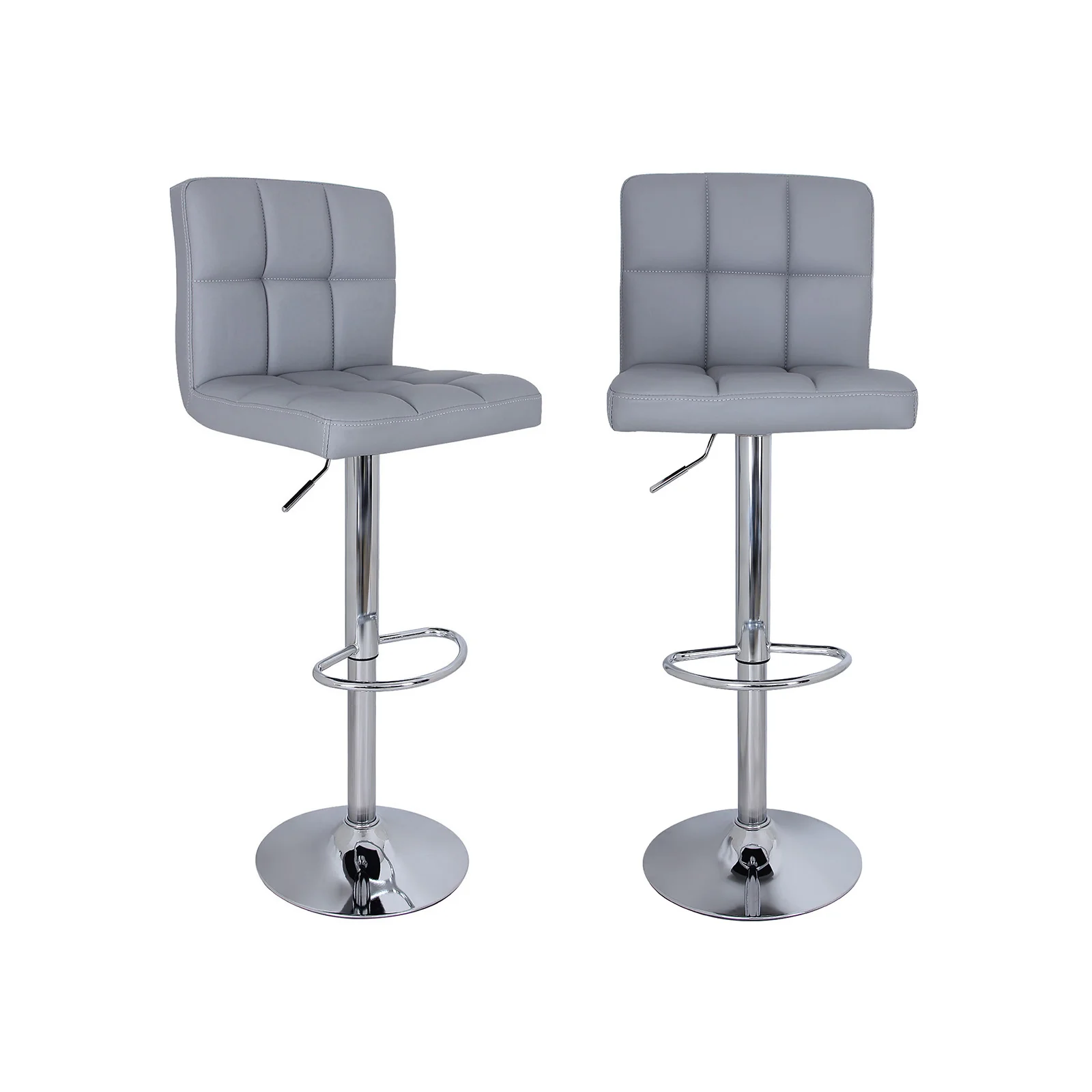 SONGMICS 2 x Taburete de Bar con Respaldo Regulable en Altura y Giratorio Cromado Cuero Sintético Gris LJB64GUK