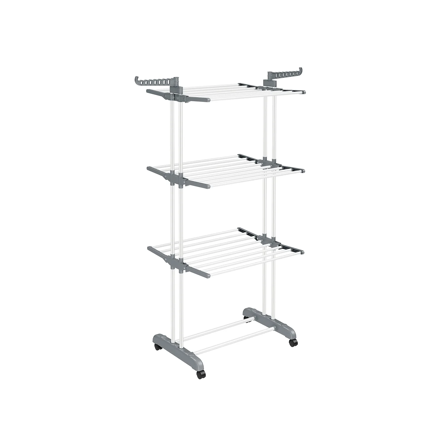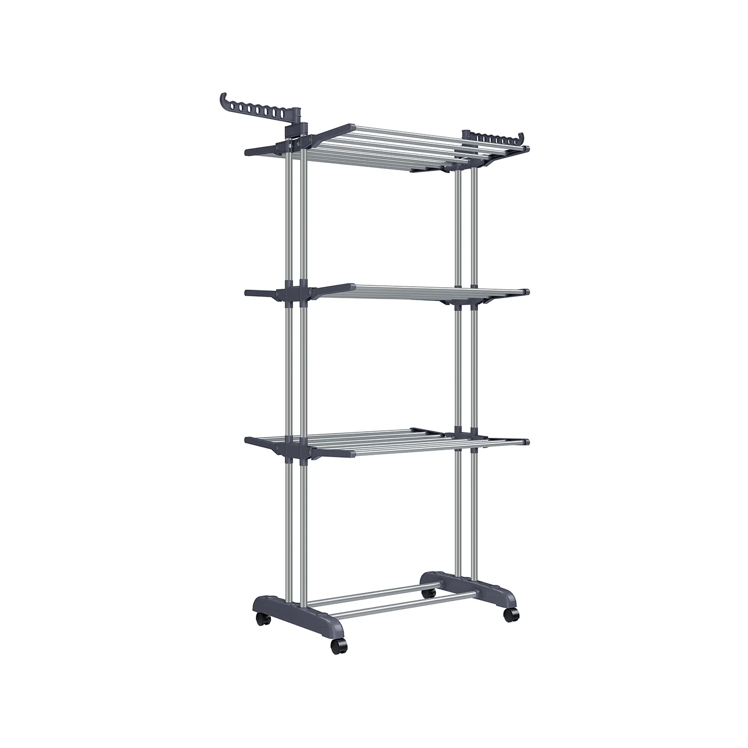 SONGMICS Tendedero, Tendedero Plegable de 4 Niveles, Tendedero Móvil, con Ruedas, Alas Plegables, 64 x 126 x 172 cm, Gran Capacidad, Montaje Fácil, Uso Interior y Exterior