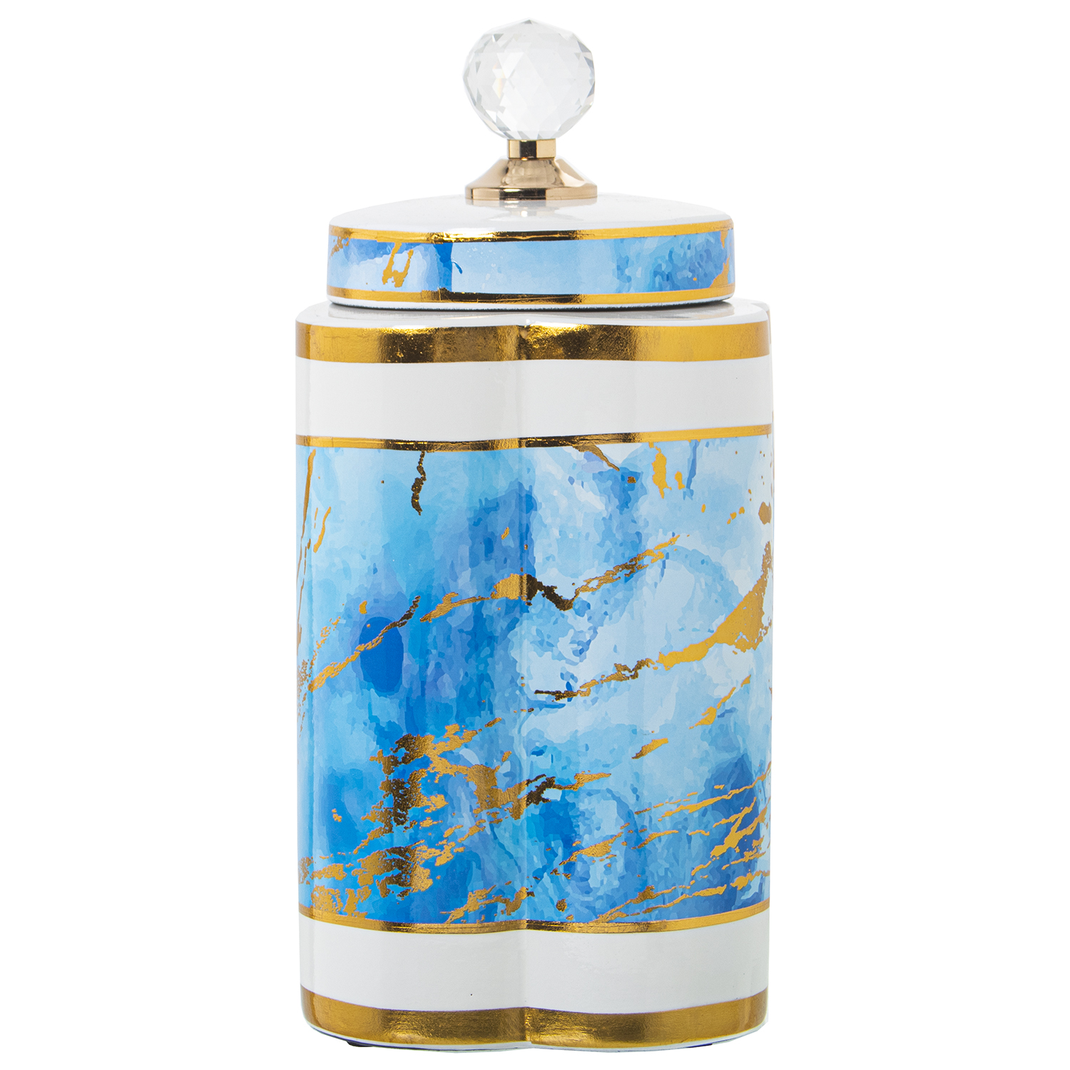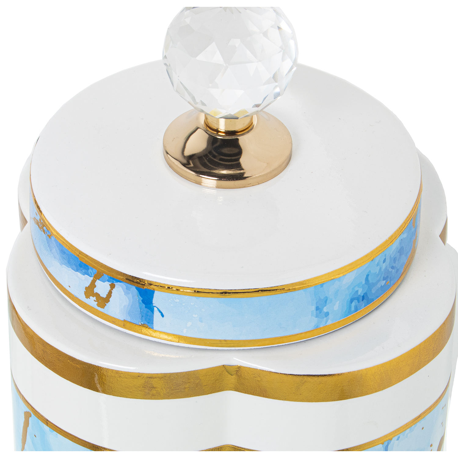 Tibor cerámica blanco/azul/dorado alto 30 cm