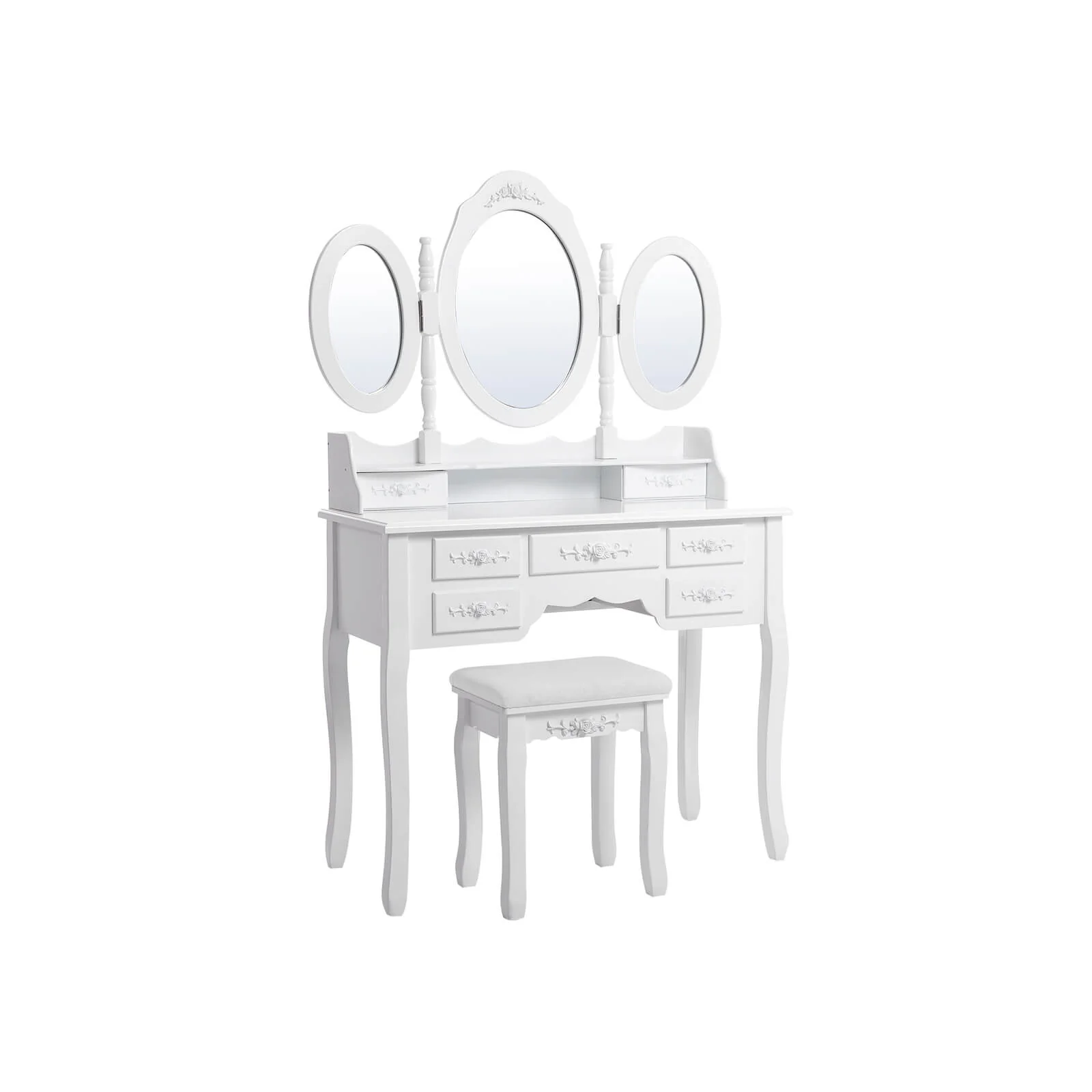 SONGMICS Tocador, Taburete y Espejo, 7 cajones, 3 Espejos, Dimensions (L*W*H): 90.0 x 40 x 145 cm