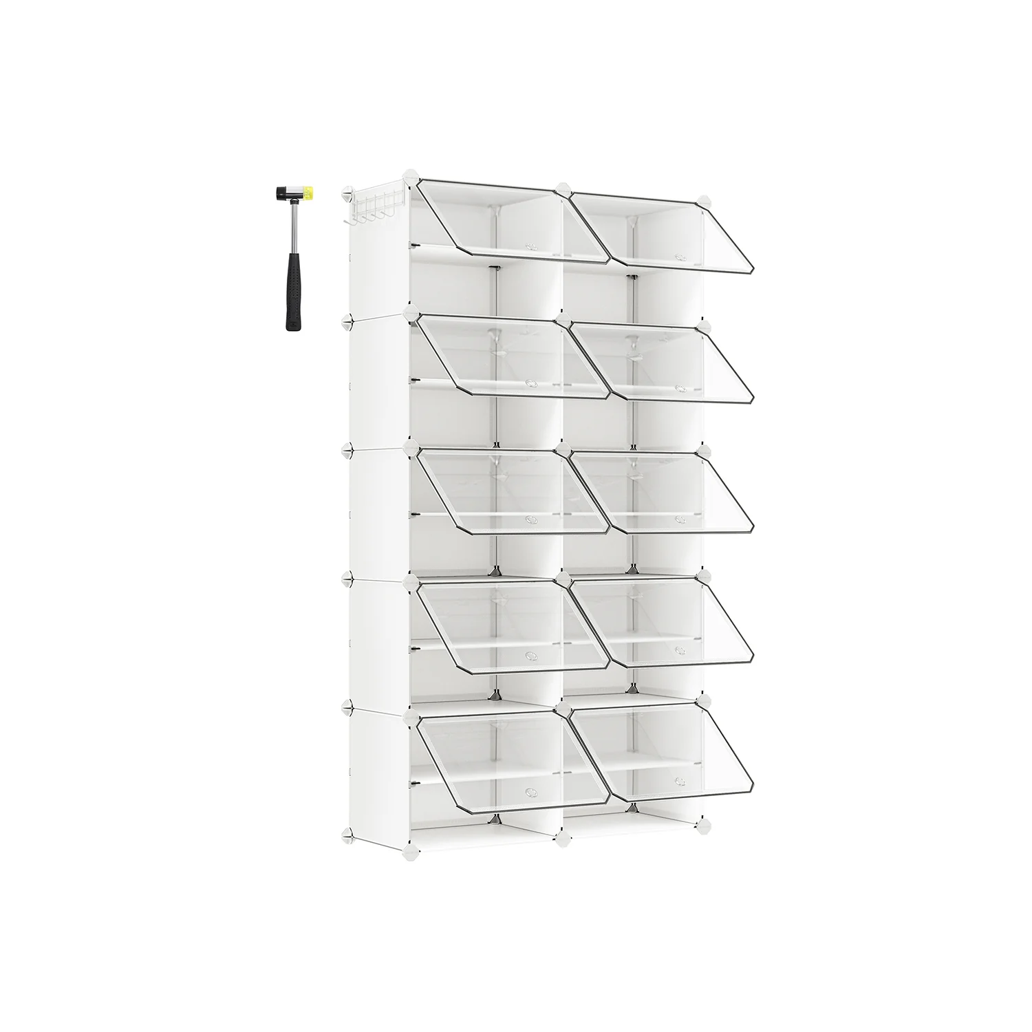 SONGMICS Mueble Zapatero Plástico, 10 Compartimentos, Zapatero Modular, Estantería Modular de Plástico, 30 x 40 x 30 cm Cada Cubo, con Puerta, Marco de Acero, Paneles de Plástico, Blanco LPC035W01