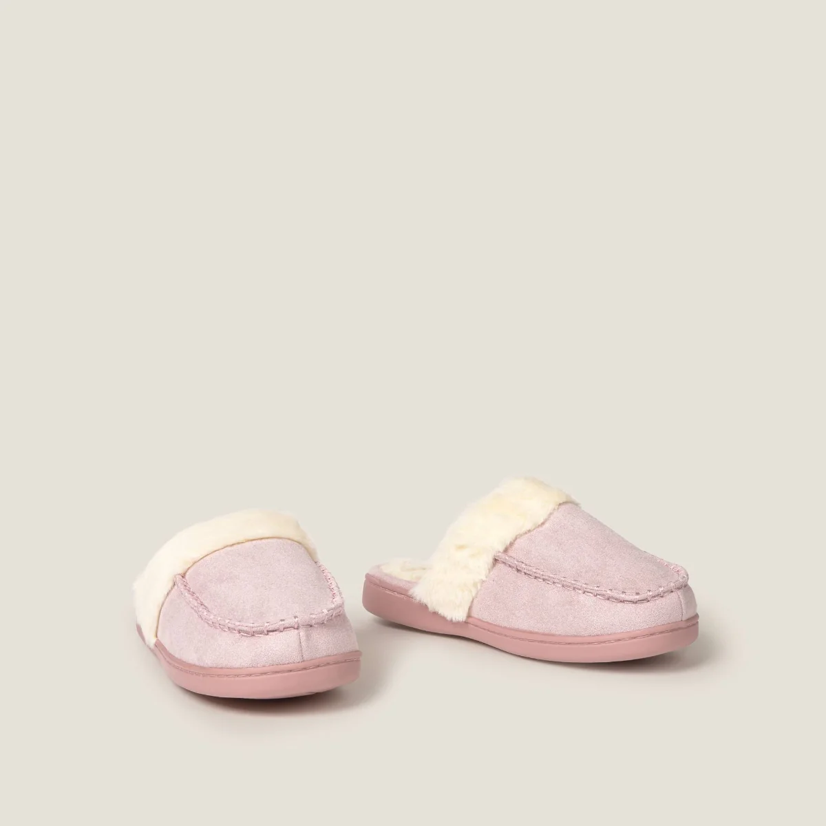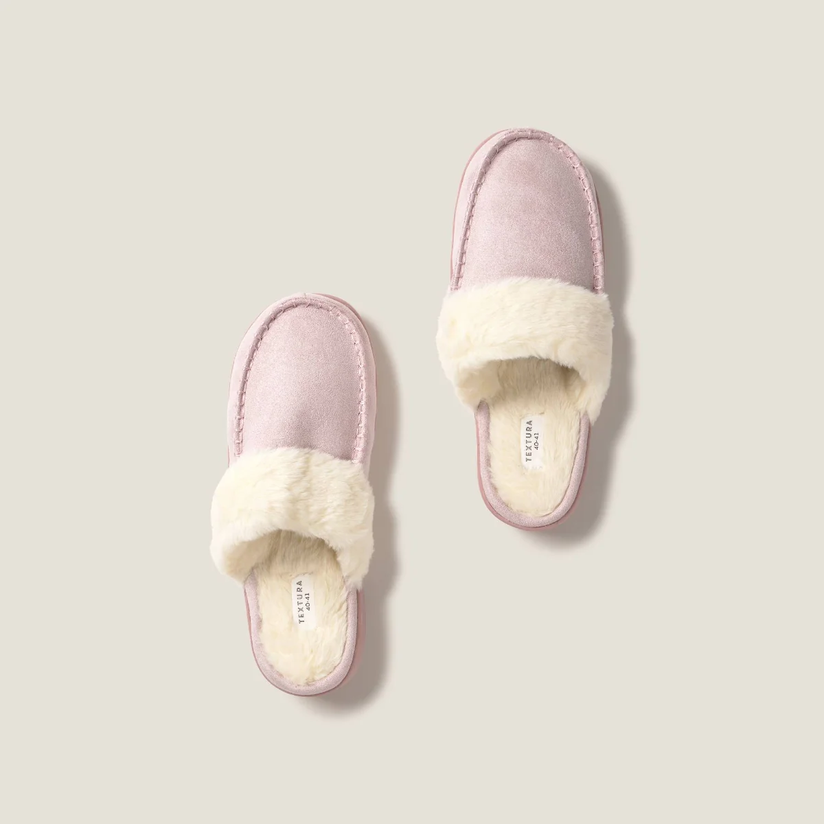 Zapatillas con interior de pelo suave y suela antideslizante. Combinables con el conjunto Misk y Musk para quienes buscan un look armonioso y cómodo en pareja. Disponibles en varias tallas.
